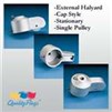 Cast aluminum construction with cast nylon pulley on a 1/4" stainless steel axle. Designed to slip over the top of the flagpole and be secured by stainless steel set screws.