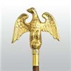 This Perched Eagle Pole Ornament is manufactured of metal with a gold finish. It measures 6.75 inches and comes with its own ferrule. Recommended for indoor use or for parades.