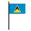This 4 x 6 inch St. Lucia Flag is printed on lustrous, silk-like polyester material. Each one is carefully hem-stitched on all four sides for longer lasting beauty. Mounted on a 10 inch black plastic staff, this flag offers the highest quality in a mounted flag. This product is made of a material not suitable for outdoor use.